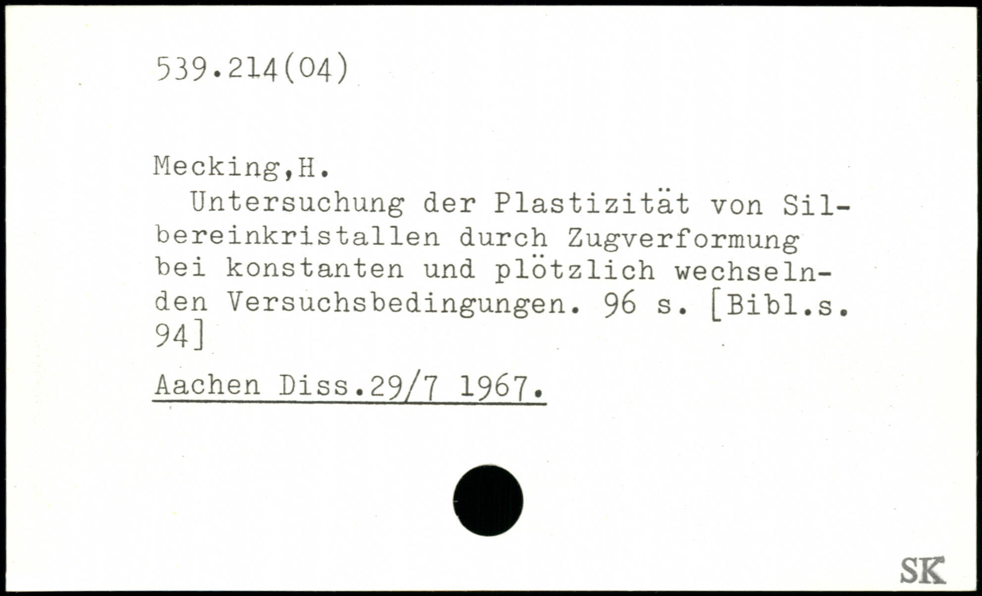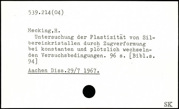 Untersuchung der Plastizität von Silbereinkris tallen durch Zugverformung bei konstanten und plötzlich wechselnden Versuchsbedingungen.