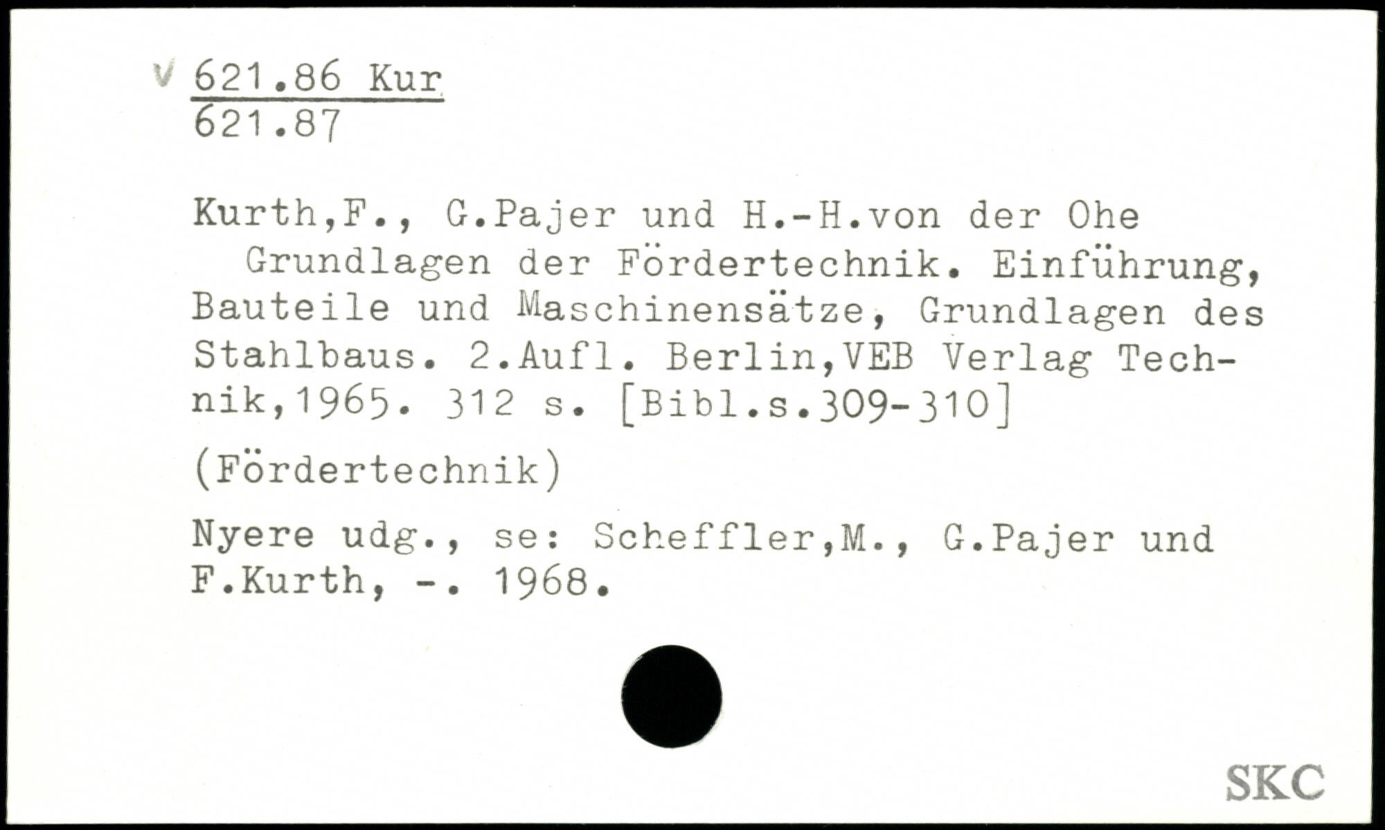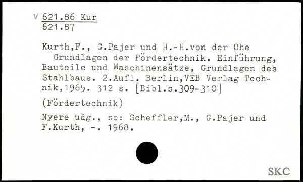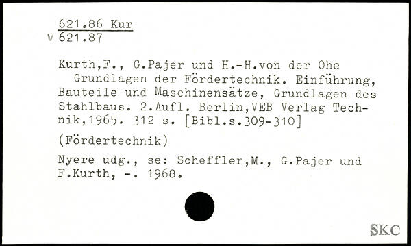 Kurth,F., G.Pajer und H.-H.von der Ohe Grundlagen der Fördertechnik. Einführung, Bauteile und Maschinensätze, Grundlagen des Stahlbaus.