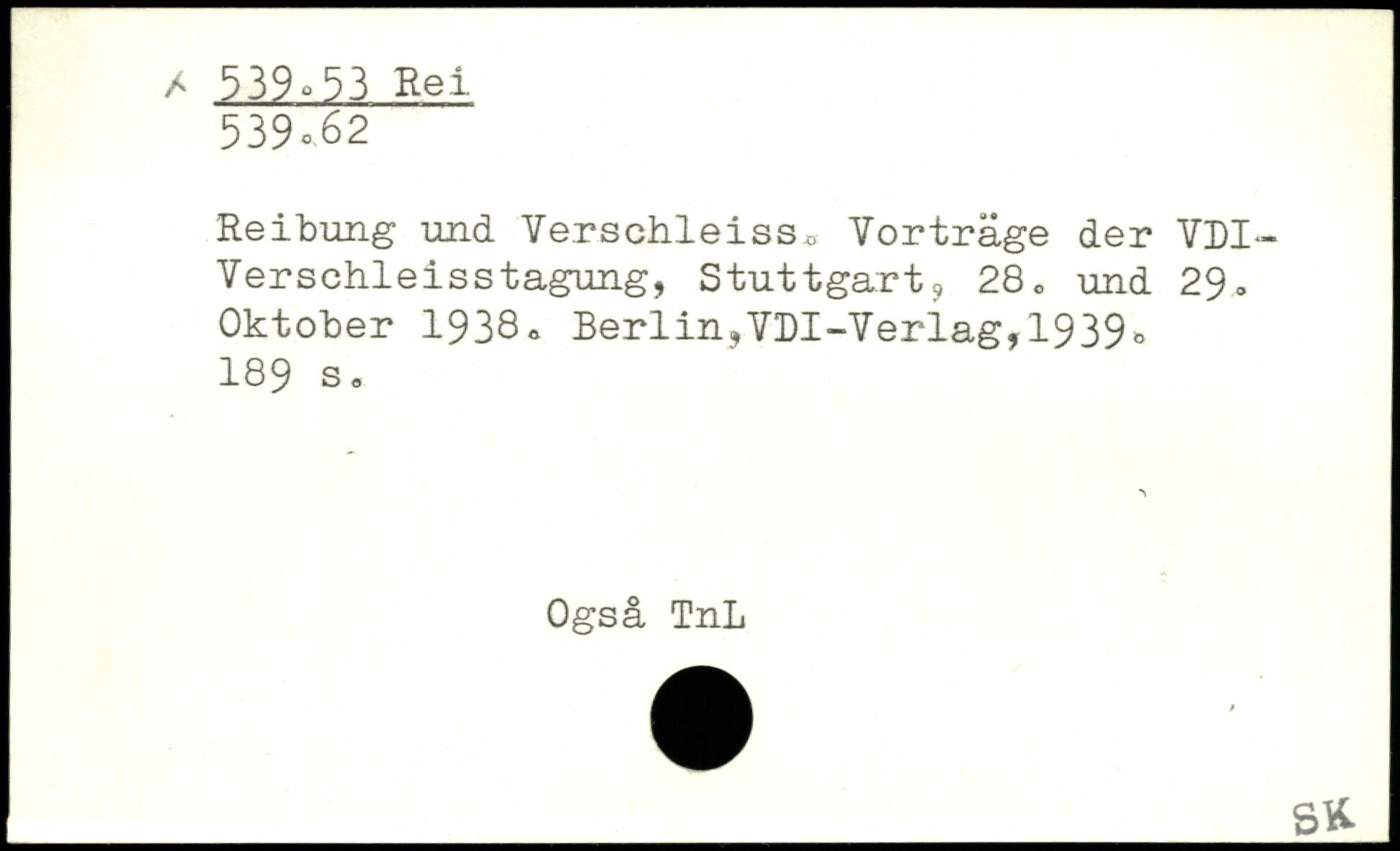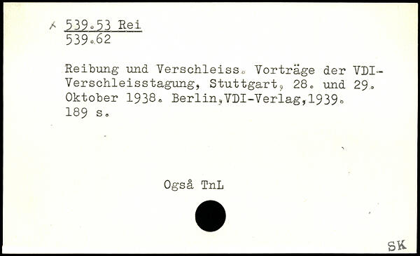 Reibung und Verschleiss, Yorträge der VDI-Yerschleisstagung, Stuttgart, 28. und 29, Oktober 1938.