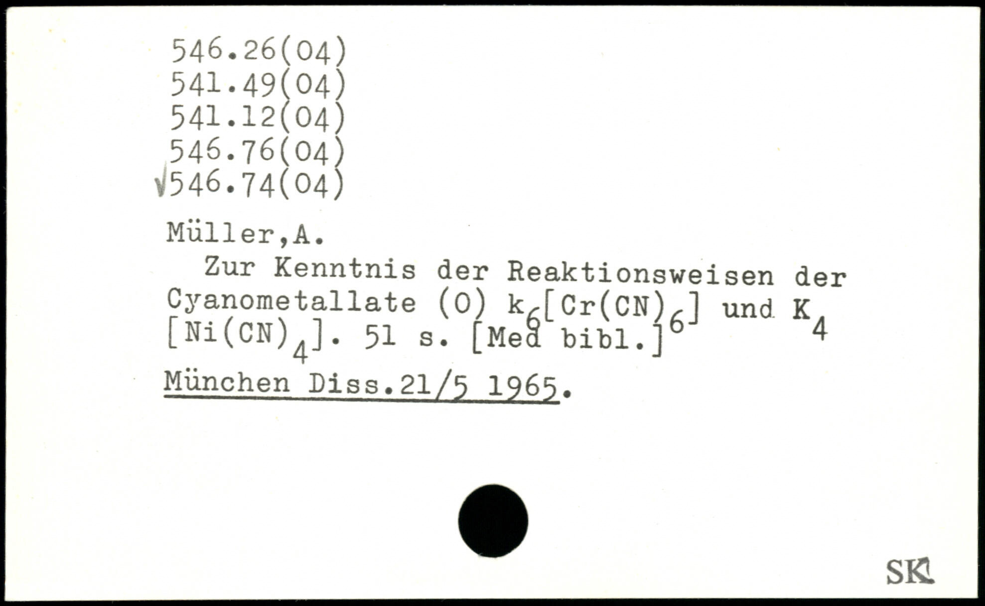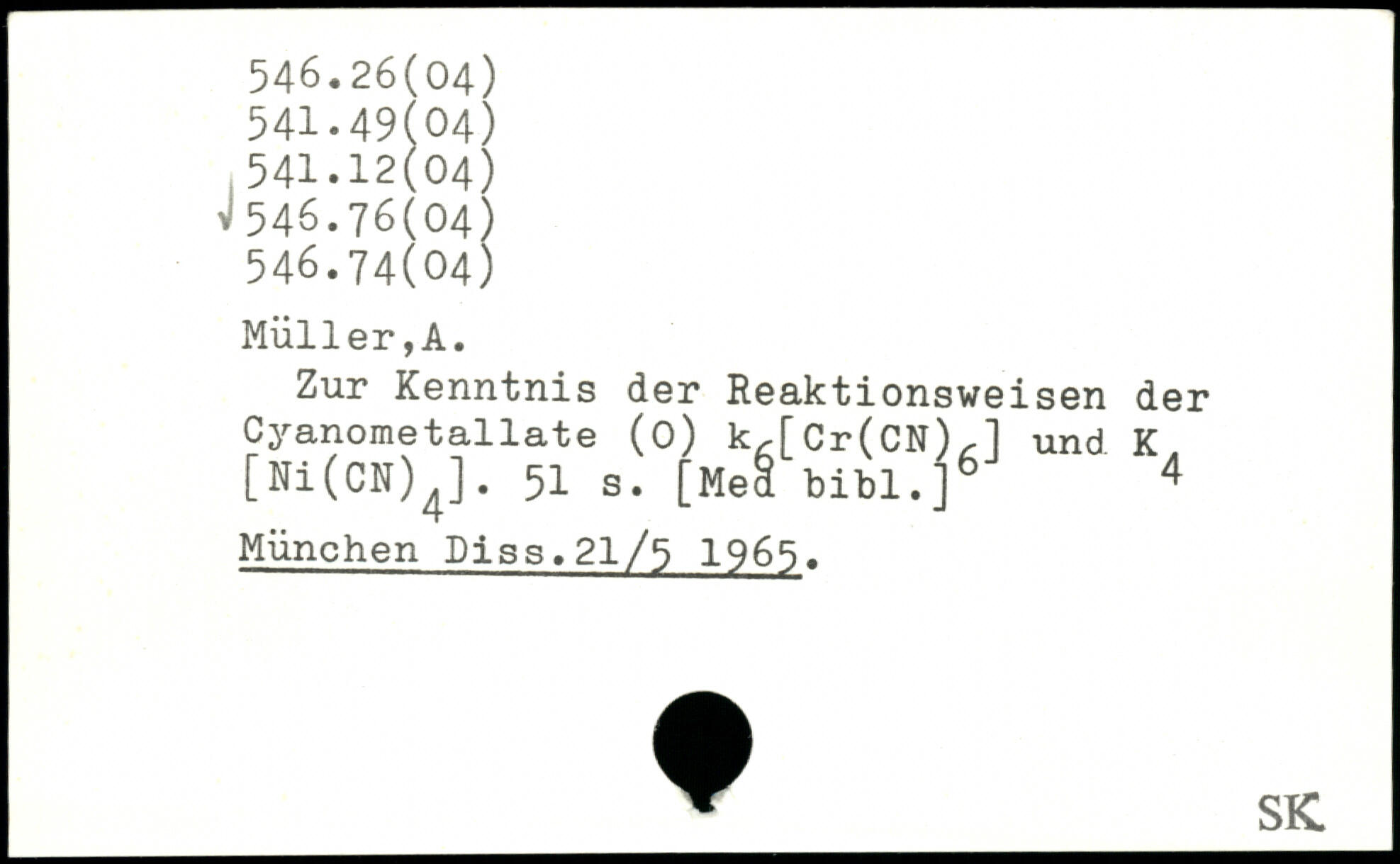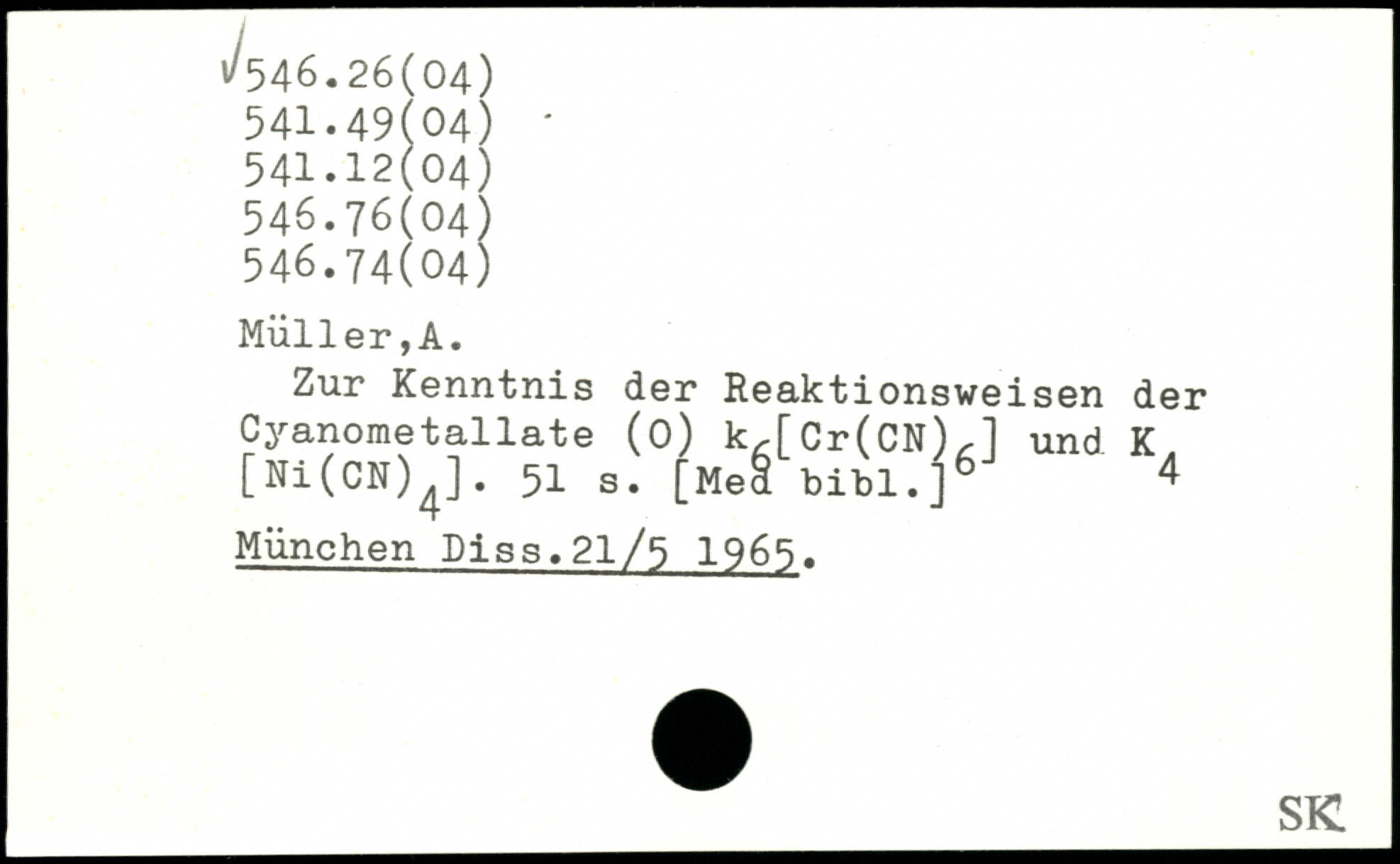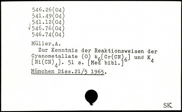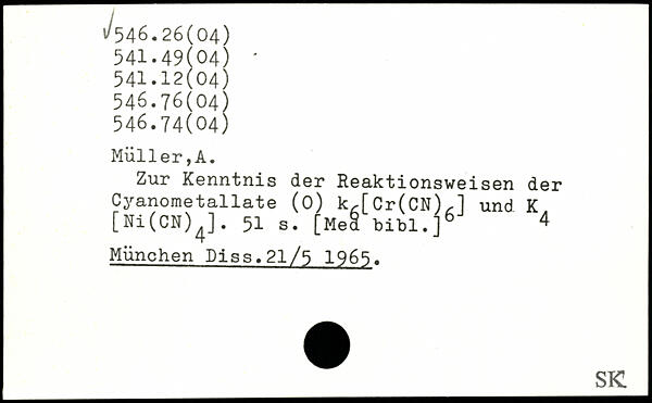 Zur Kenntnis der Reaktionsweisen der Cyanometallate (0) k,[Cr(CN),l und K
