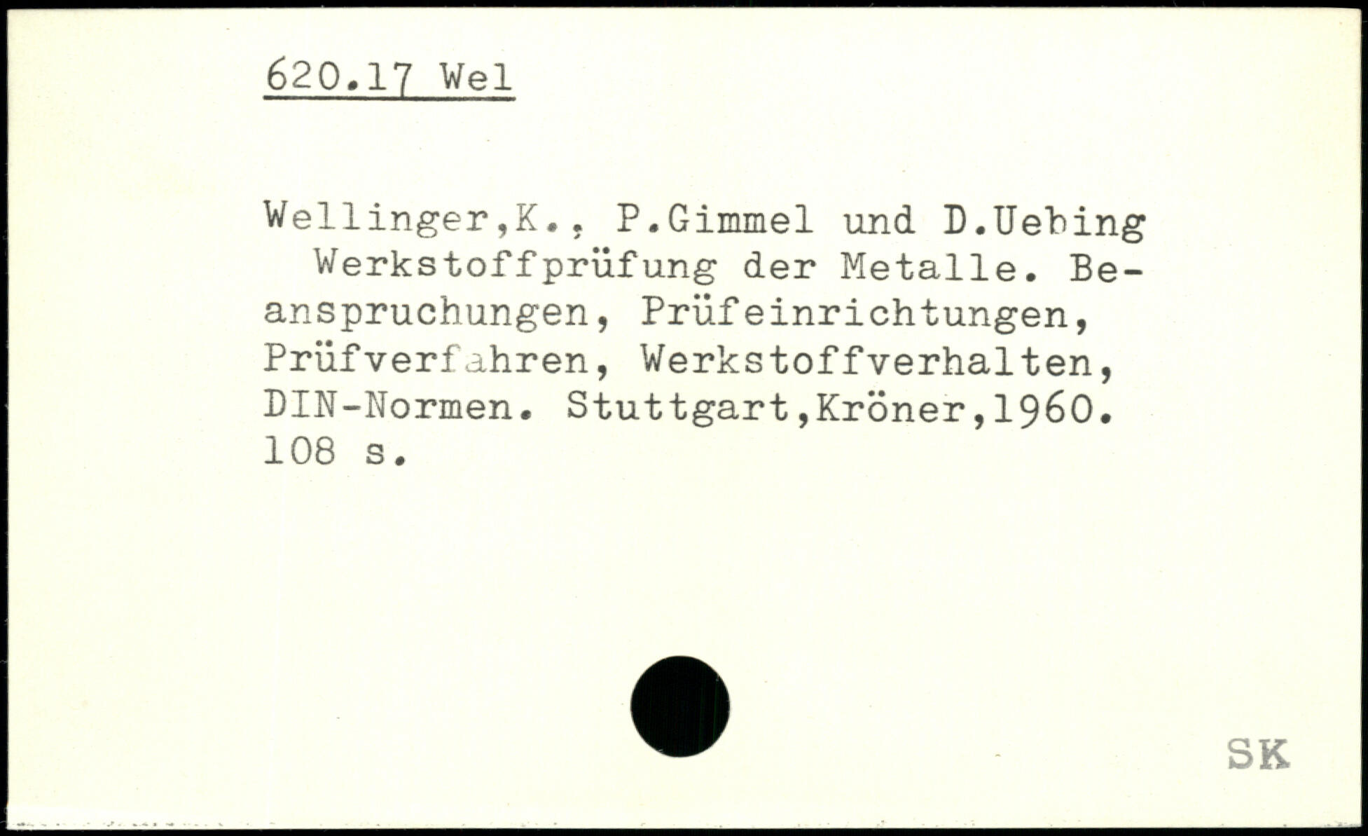 Wellinger ,K.. P.Gimmel und D.Uehing Werkstoffprüfung der Metalle. Beanspruchungen , Prüfeinrichtungen, Prüfverfahren, Werkstoffverhalten, DIN-Normen.