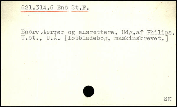 EnsretterrørrOg ensrettere. Udg.af Philips. U.st., U.Å. [Løsbladsbog, maskinskrevet.]