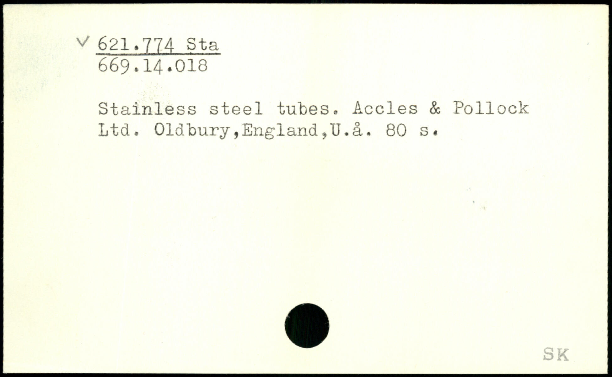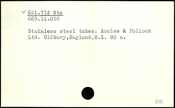 Stainless steel tubes. Accles & Pollock Ltd. Oldbury,England,U.å