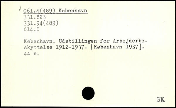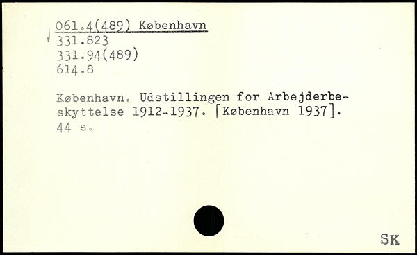 København. Udst1111ngen for Arbejderbeskyttelse 1912-1937.