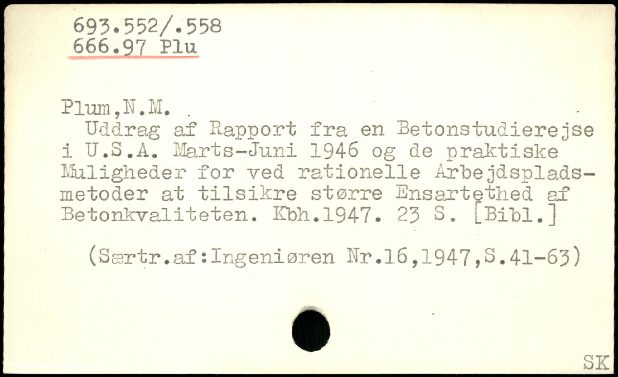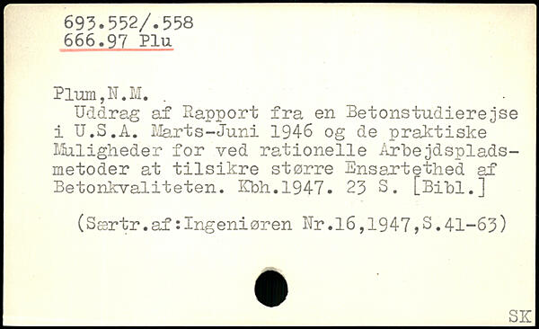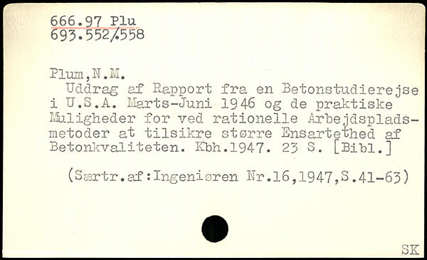 Uddrag af Rapport fra en Betonstudierejse i U.S.A. ilart s-Juni 1946 og de praktiske Muligheder for ved rationelle Arbejdsplads-metoder at tilsikre større Ensartethed af Betonkvaliteten. Ifbh.1947.
