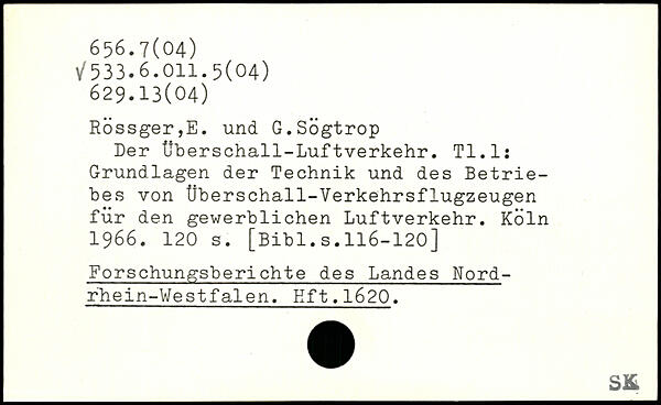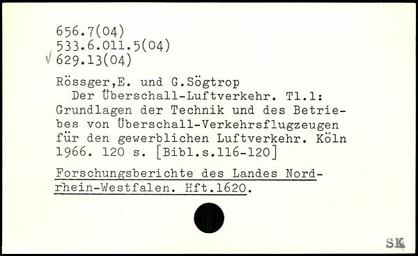Der Überschall-Luftverkehr. Tl.l: Grundlagen der Technik und des Betriebes von Überschall-Verkehrsflugzeugen für den gewerblichen Luftverkehr.