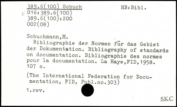 UDK: 389.6(100) Schuch, 016:389.6(100), 200, 002(08)