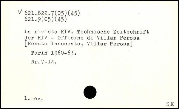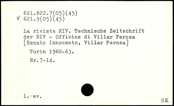 La rivista RIV. Technische Zeitschrift der RIV - Officine di Villar Perosa [Renato Innocento, Villar Perosa] Turin 1960-63. Nr.7-14.