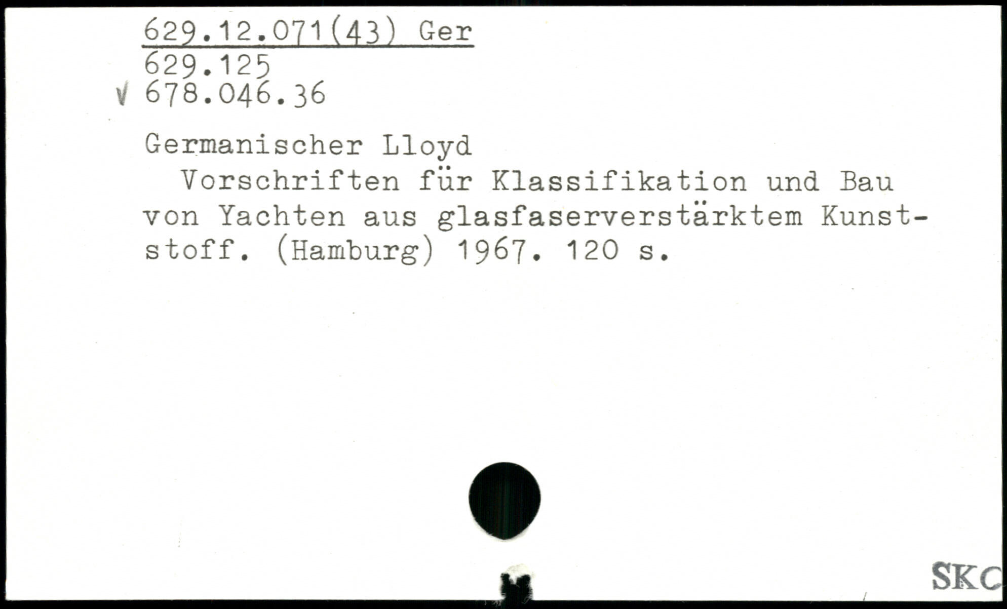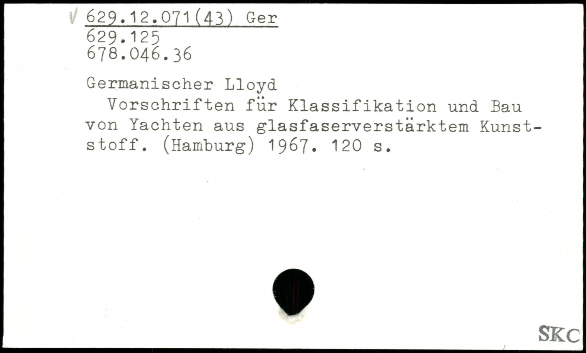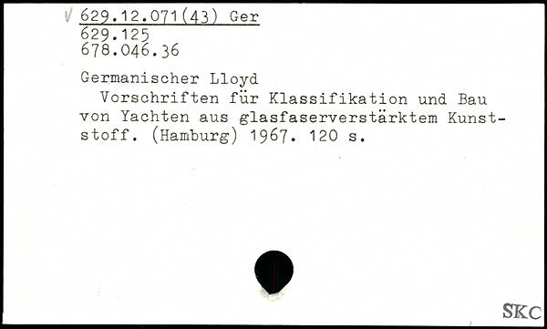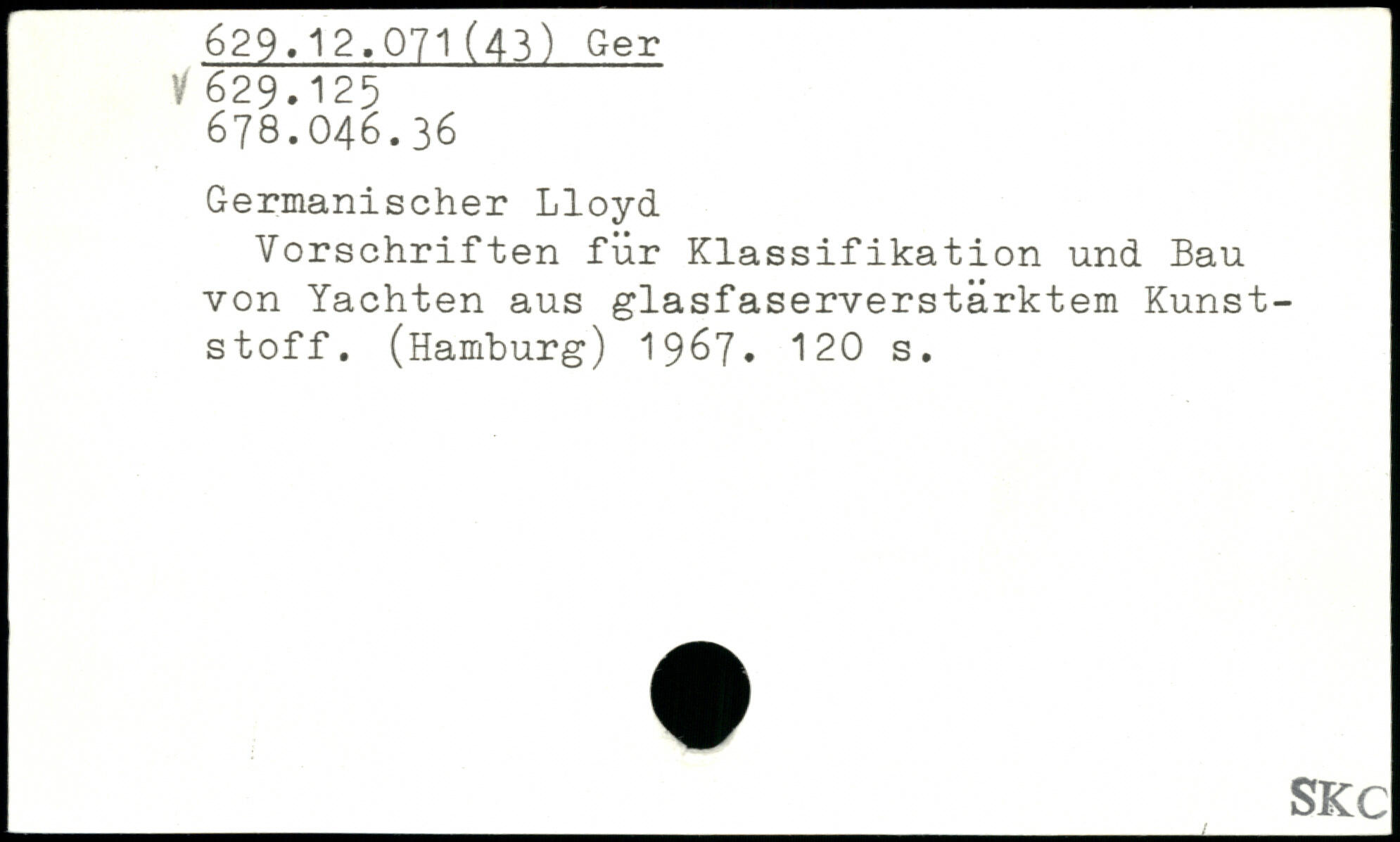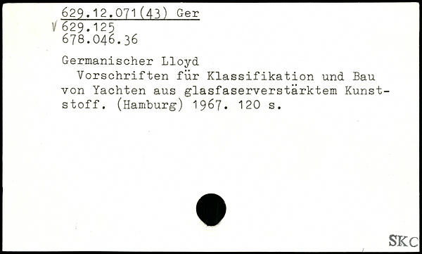 Germanischer Lloyd Vorschriften für Klassifikation und Bau von Yachten aus glasfaserverstärktem Kunststoff. (Hamburg) 1967.