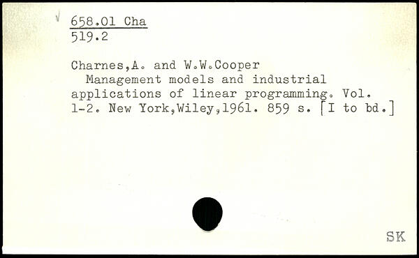 Management models and industrial applications of linear programming, Yol. 1-2, New York,Wiley?1961.