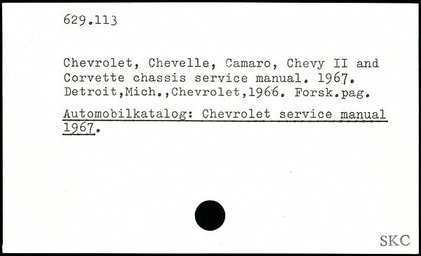 Chevrolet, Chevelle, Camaro, Chevy II and Corvette chassis service manual. 1967.