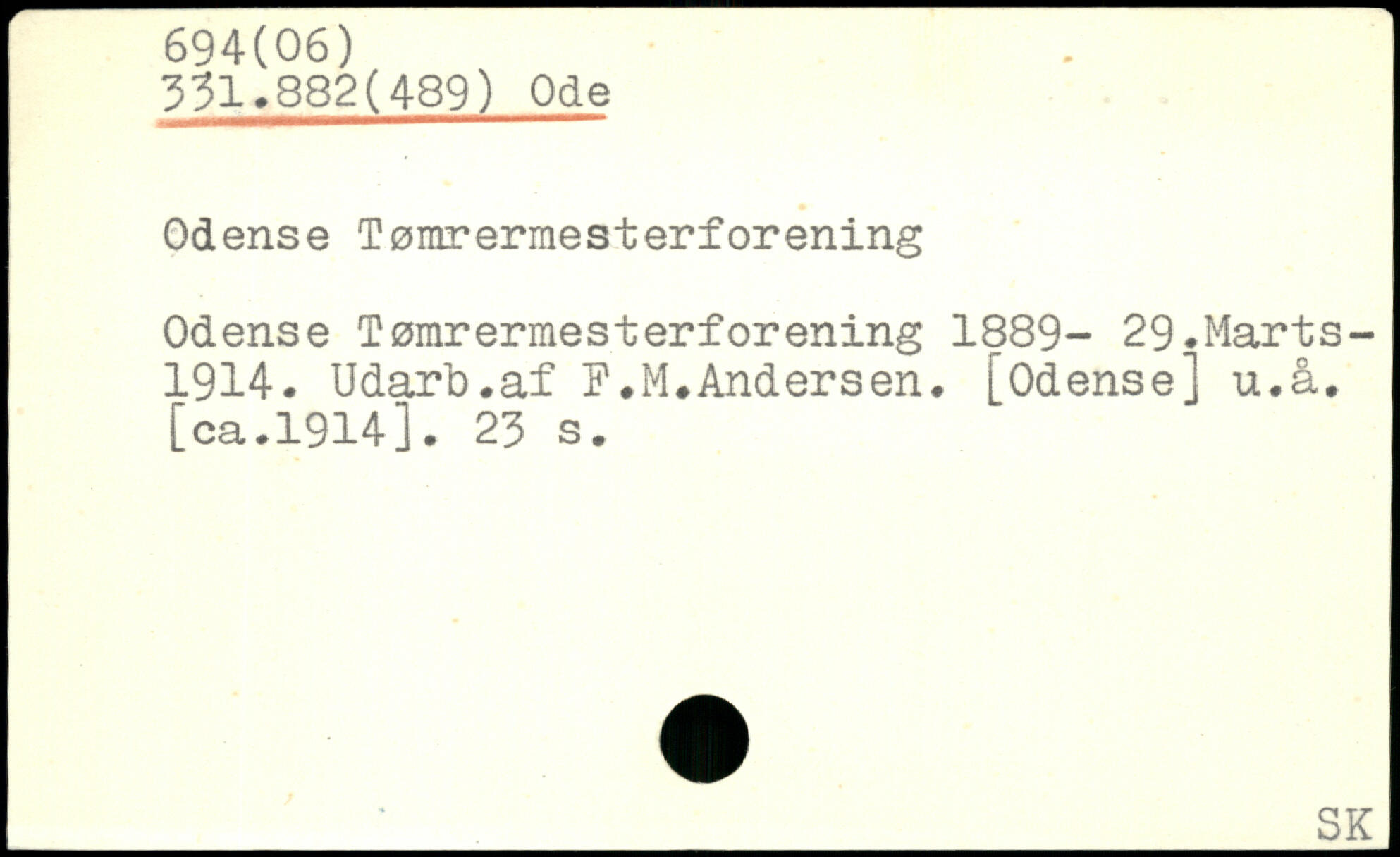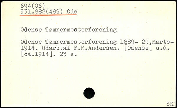 Odense Tømrermesterforening Odense Tømrermesterforening 1889- 29.Marts-1914. Udart.af F.M#Andersen.