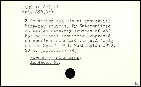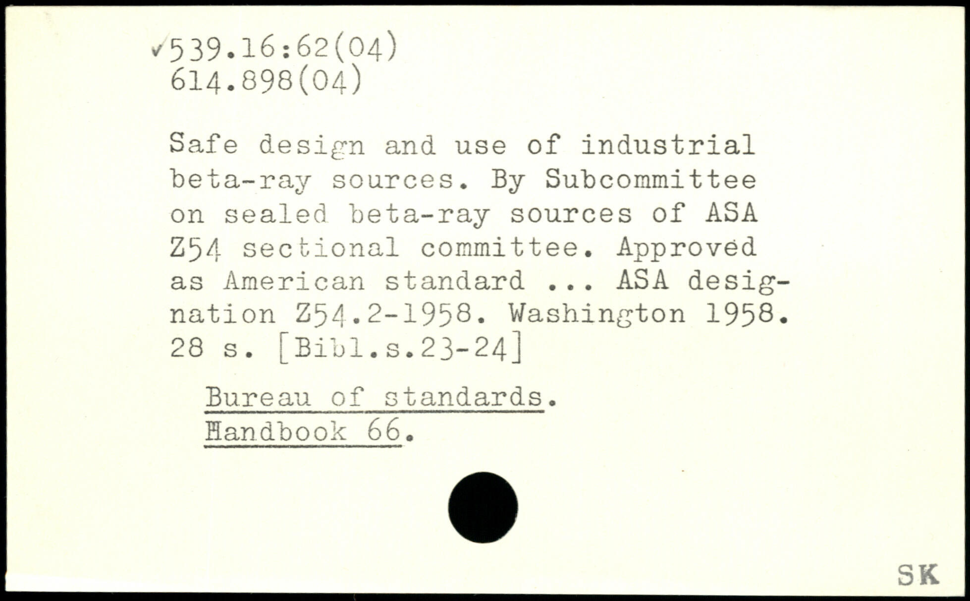 Safe design and use of industrial "beta-ray sources. By Subcommittee on sealed beta-ray sources of ASA Z