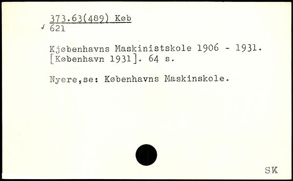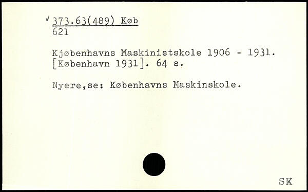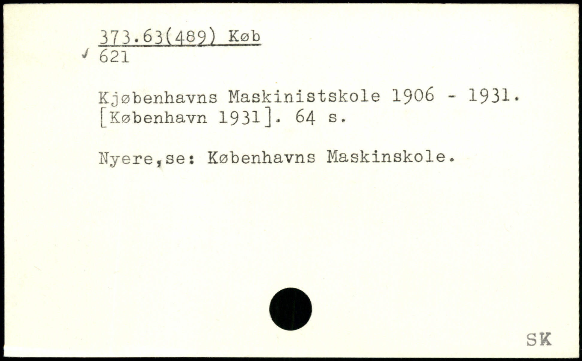 Kjøbenhavns Maskinistskole 1906 - 1931.