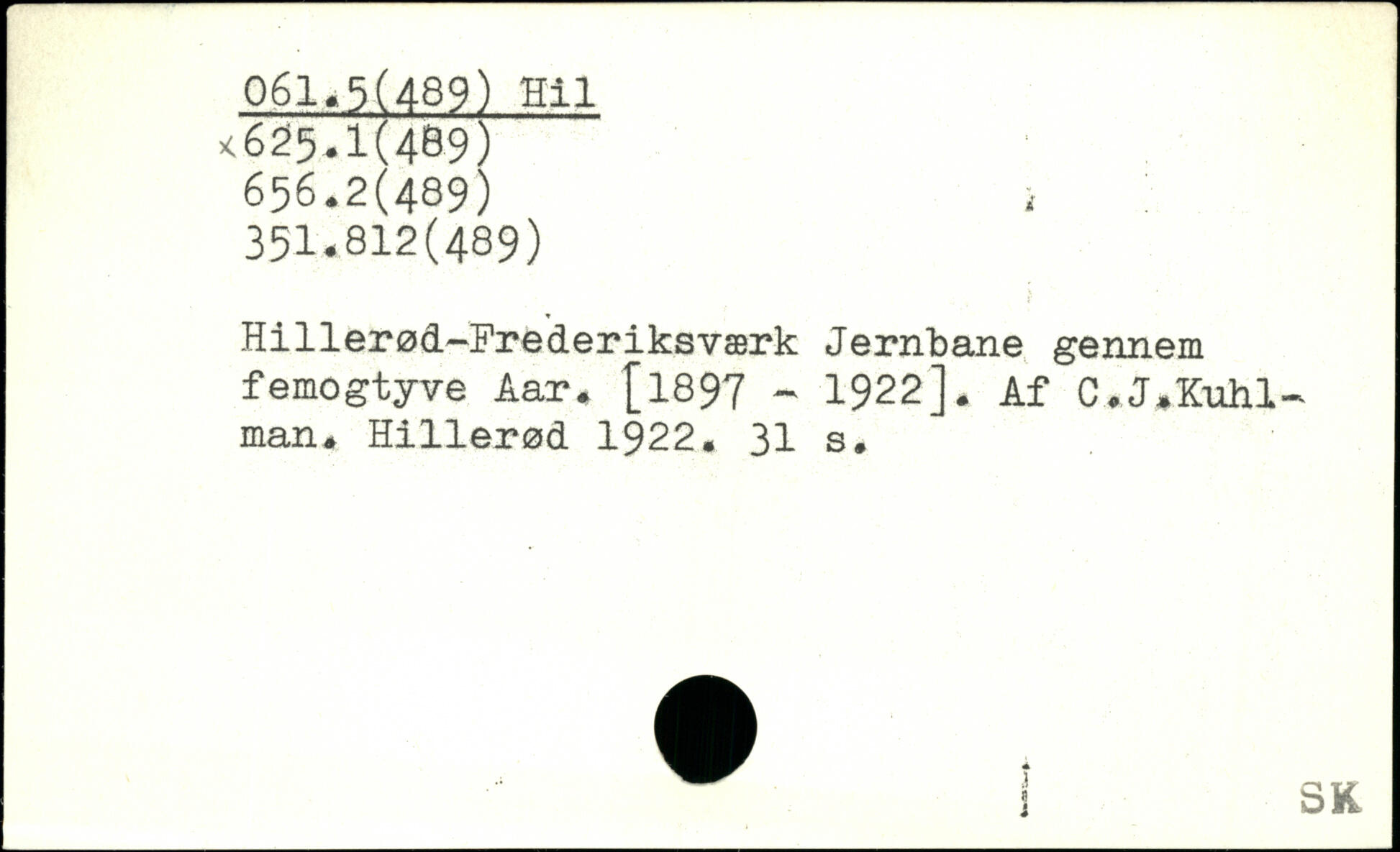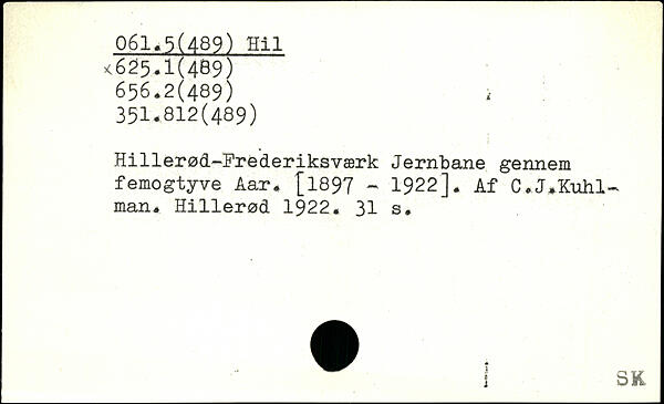 Hillerød-Frederiksværk Jernbane gennem femogtyve Aar. [1897 - 1922]. Af C.J.Kuhl-man. Hillerød 1922.