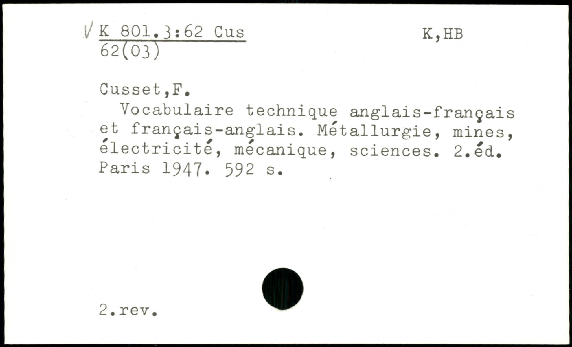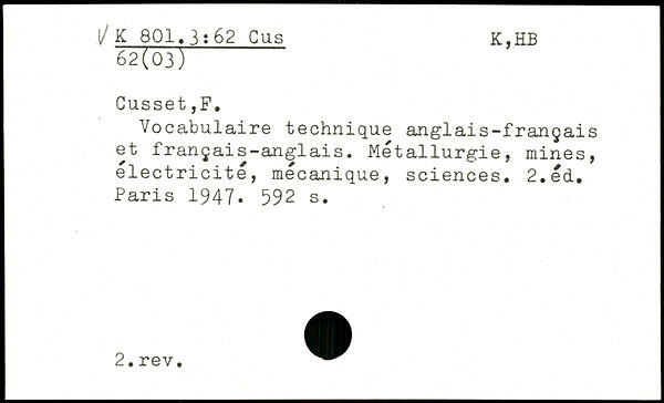 Vocabulaire technique anglais-français et français-anglais. Métallurgie, mines, électricité, mécanique, sciences. 2.éd.