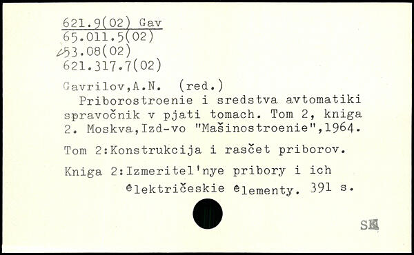 Priborostroenie i sredstva avtomatiki spravocnik v pjati toraach. Tom 2, kniga 2. Moskva,Izd-vo "Masinostroenie",1964. Tom 2 :Konstrukcija i rascet priborov. Kniga 2:Izmeritel'nye pribory i ich ^lektriceskie ^lementy.