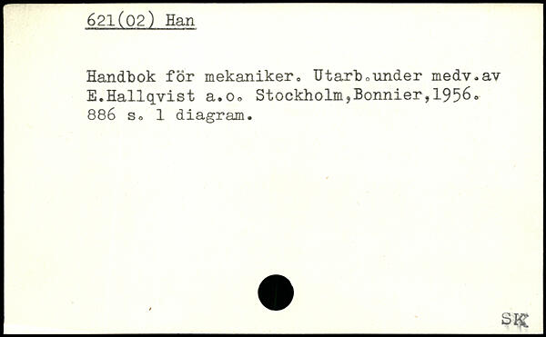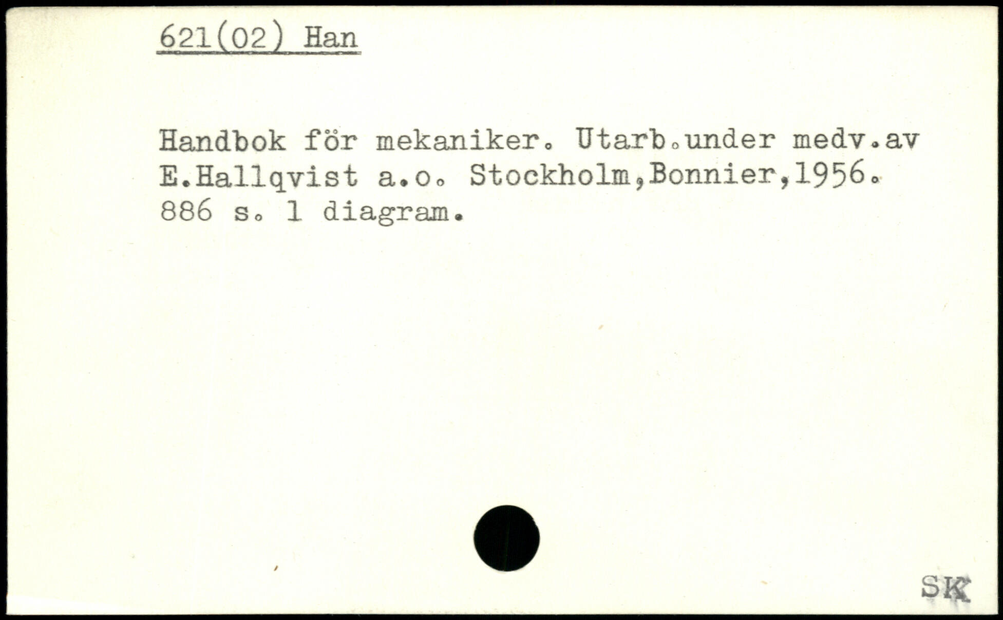 Handbok för mekaniker, Utarbounder medv.av E.Hallqvist a.o