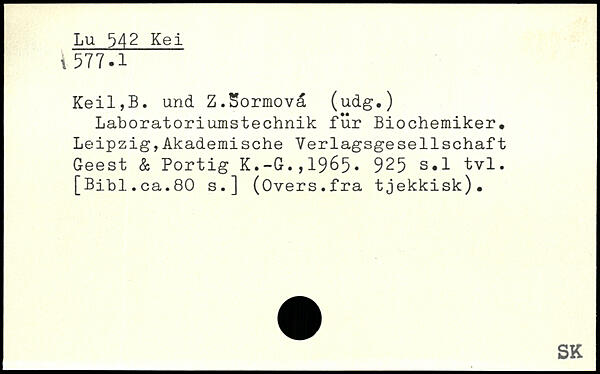Laboratoriumstechnik für Biochemiker. Leipzig,Akademische Verlagsgesellschaft Geest & Portig K.-G.,1965.