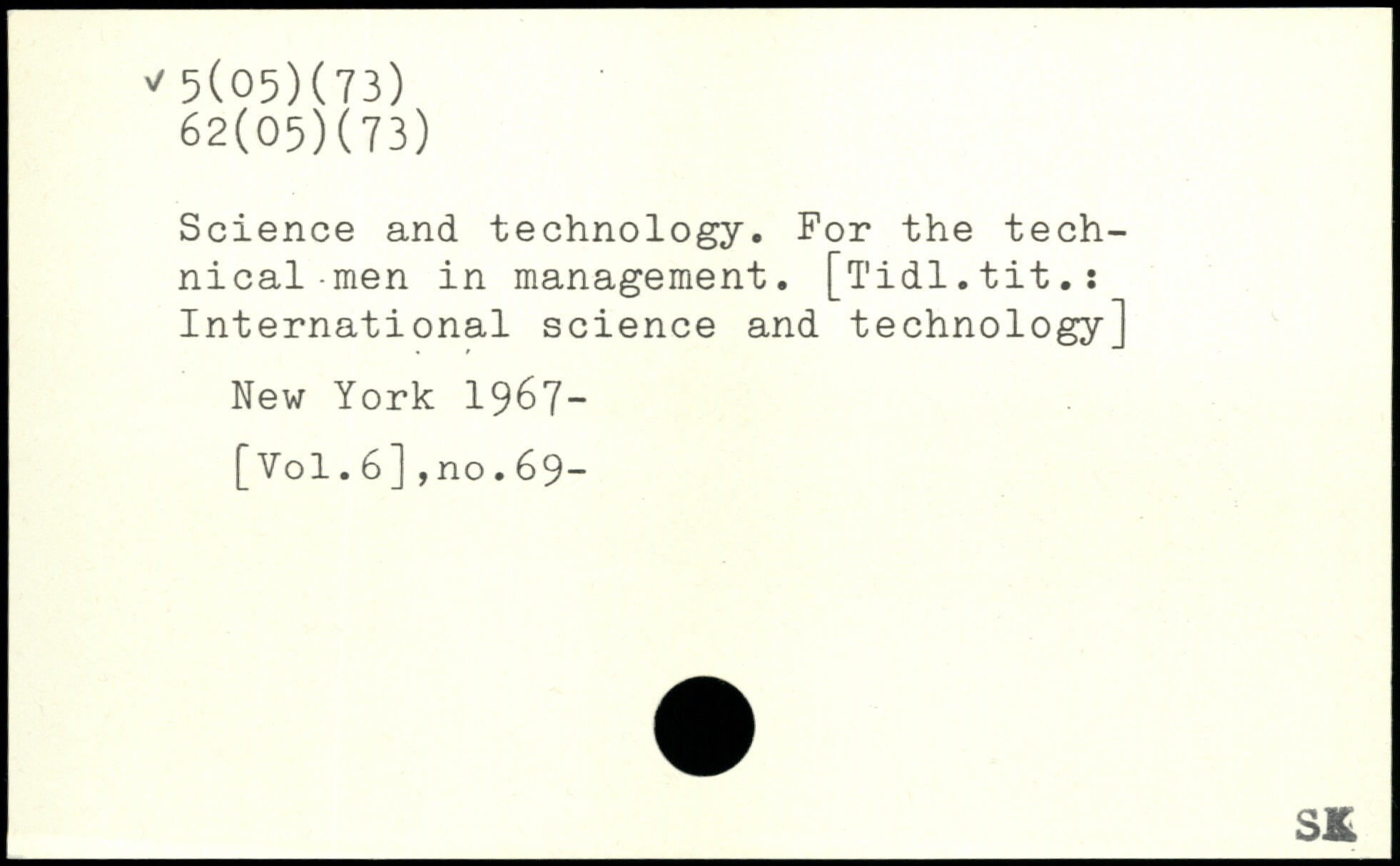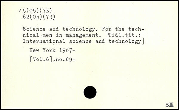 Science and technology. For the technical-men in management. [Tidl.tit.: International science and technology]