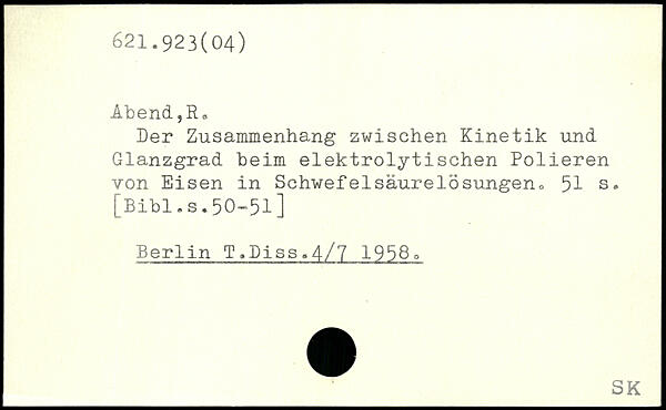 Der Zusammenhang zwischen Kinetik und Glanzgrad heim elektrolytischen Polieren von Eisen in Schwefelsaurelösungen<>