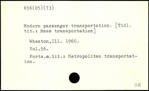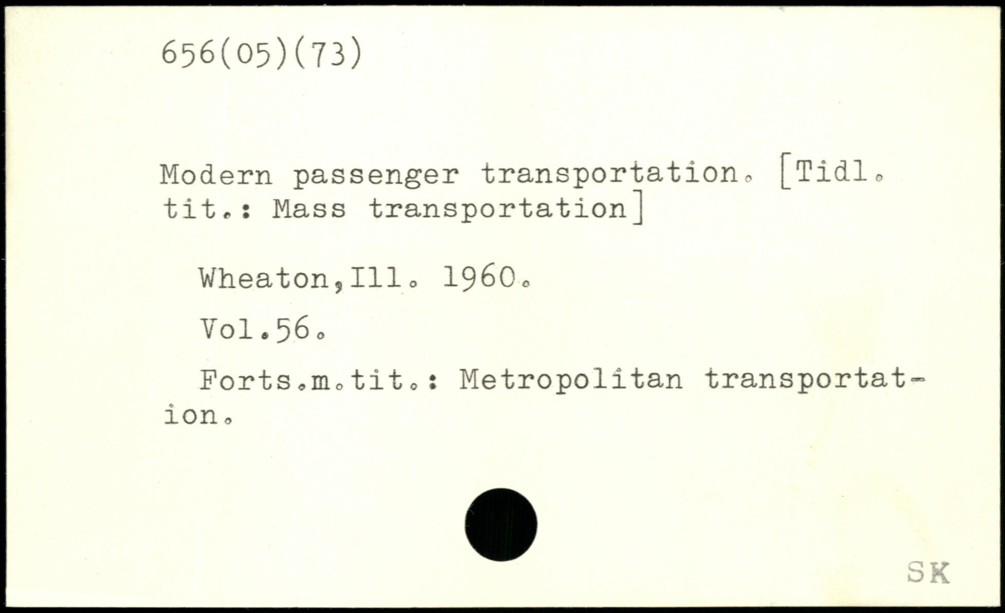 Modern passenger transportation0 [Tidle tit,: Mass transportation] Wheaton?Illo 1960, Yol.56 o Ports,i,tit. : Metropolitan transportation
