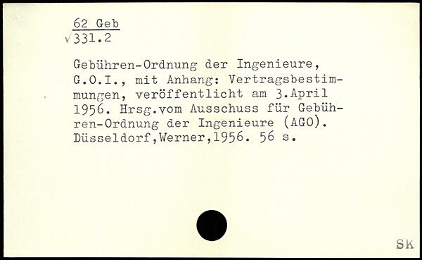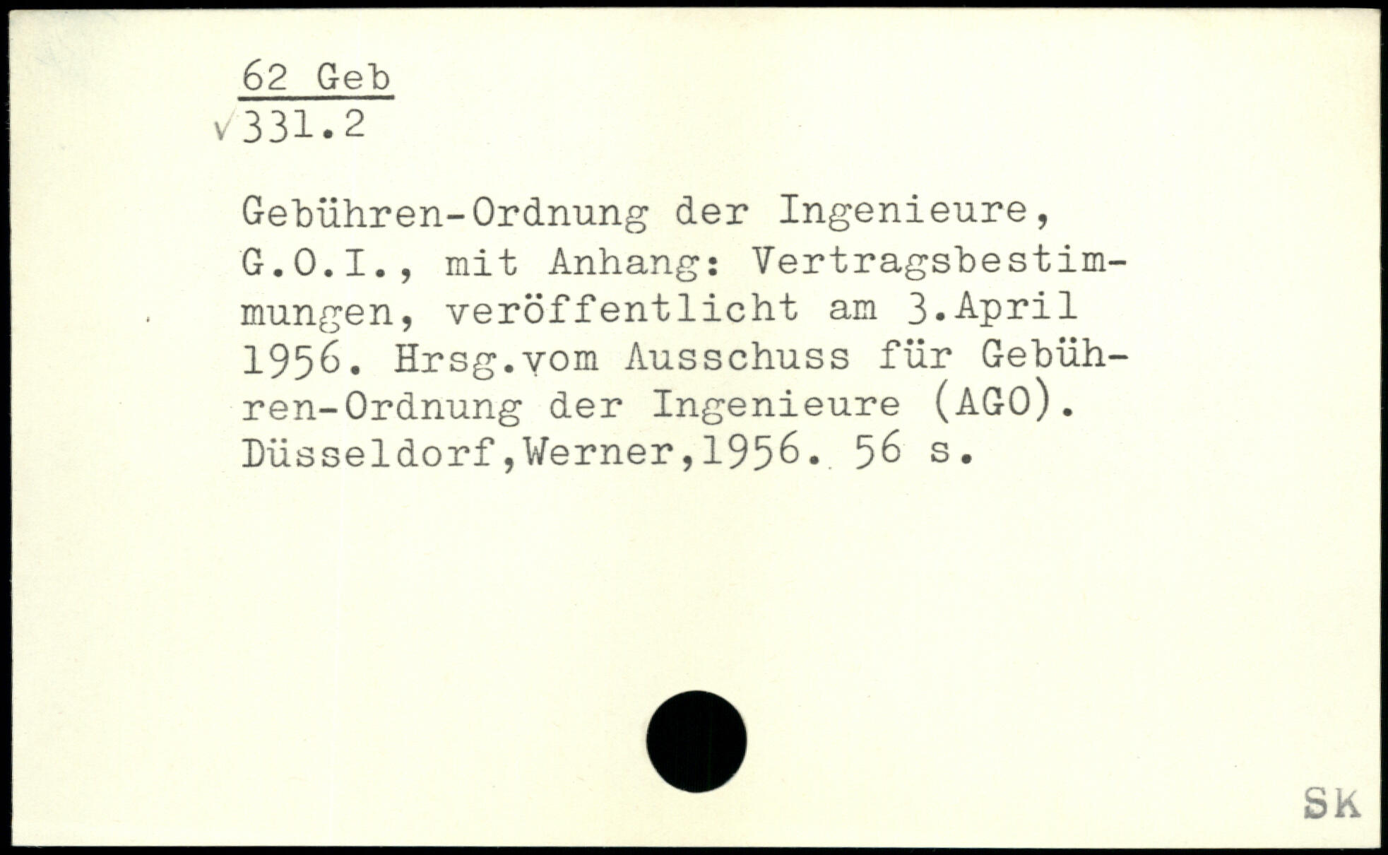 Gebühren-Ordnung der Ingenieure, G.O.I., mit Anhang: Vertragsbestim-mungen, veröffentlicht am 3.April 1956. Hrsg.vom Ausschuss für Gebüh-ren-Ordnung der Ingenieure (AGO).