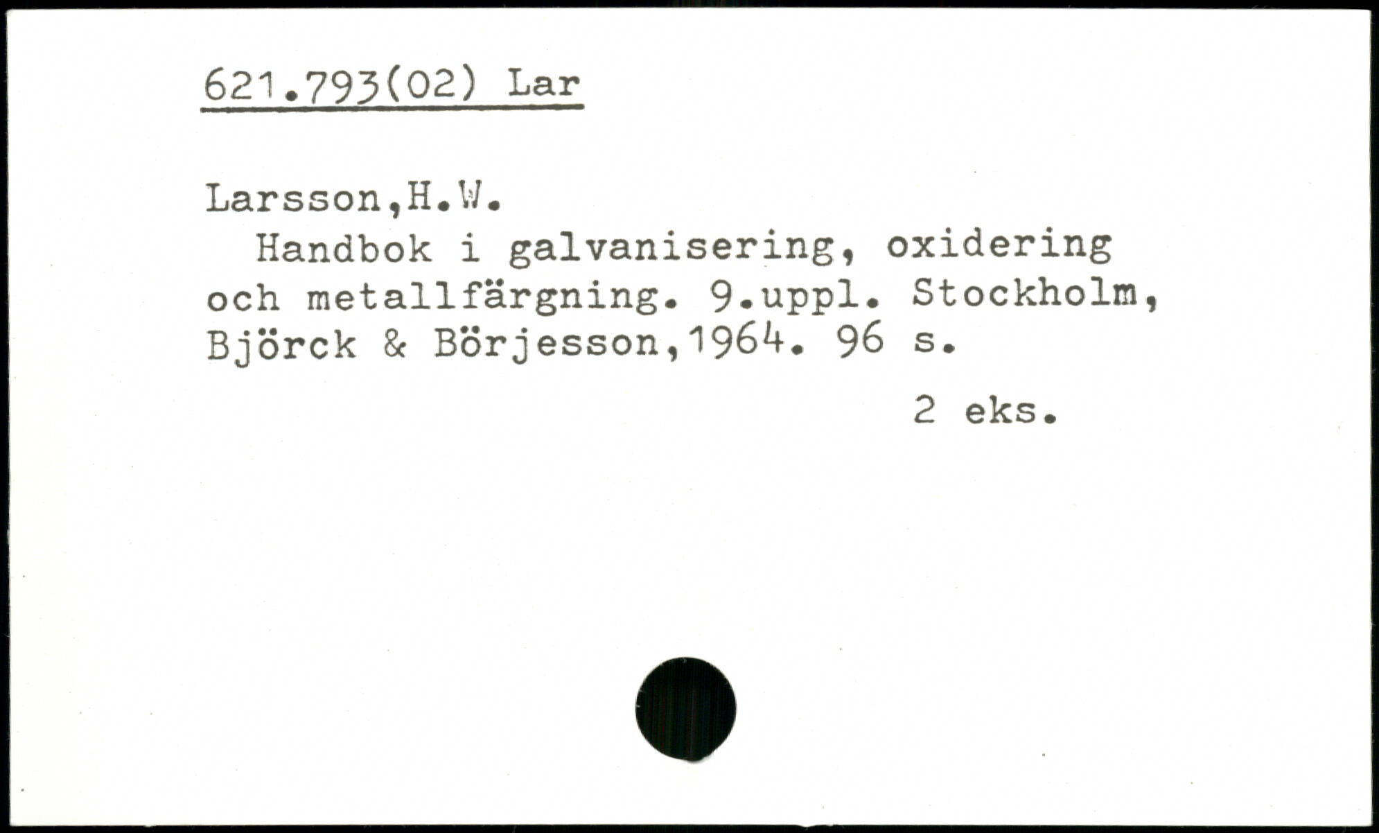 Handbok i galvanisering, oxidering och metallfärgning. 9-uppl. Stockholm, Björck & Börjesson,196^.