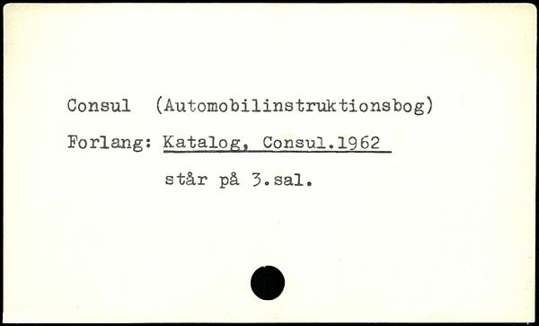 Consul (Automobilinstruktionsbog) Forlang: Katalog, Consul.