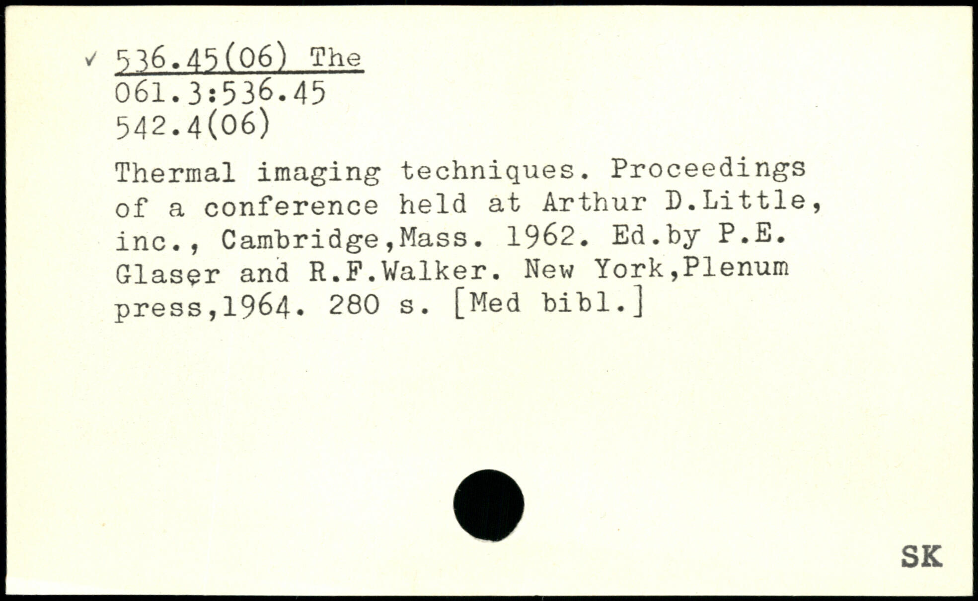 Thermal imaging techniques. Proceedings of a conference held at Arthur D.Little, inc., Cambridge,Mass. 1962. Ed.by P.E. Glaser and R.F.Walker.