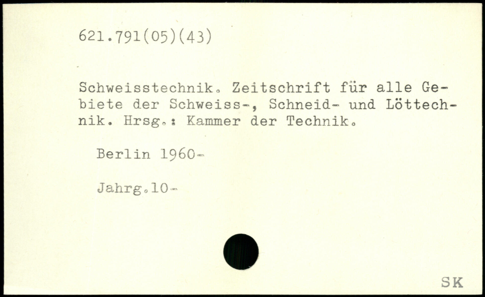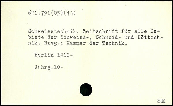 Schweisstechniko Zeitschrift für alle Gebiete der Schweiss-, Schneid- und Löttechnik. Hrsg.; Kammer der Technik0