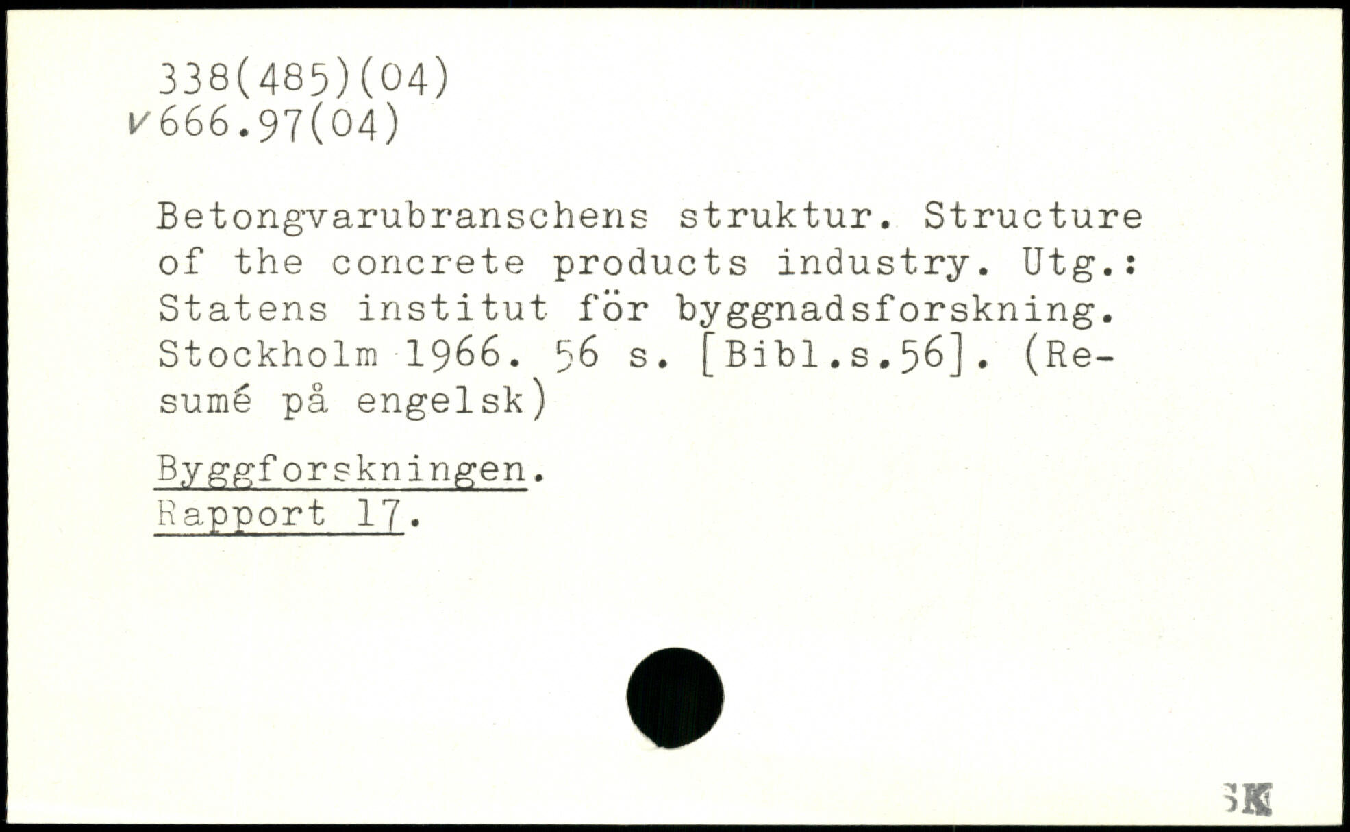 Betongvarubranschens struktur. Structure of the concrete products industry. Utg.: Statens institut for byggnadsforskning.
