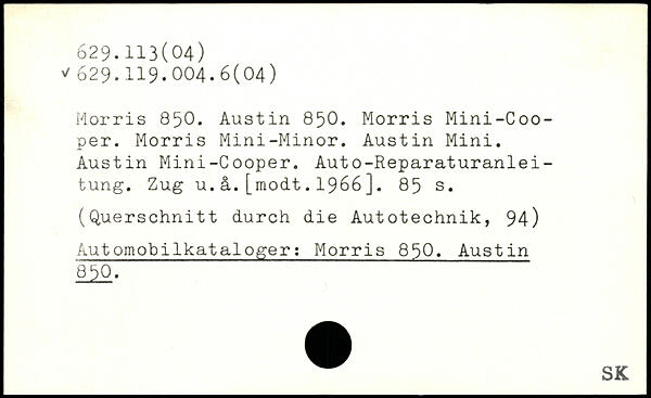 Morris 850. Austin 850. Morris Mini-Cooper. Morris Mini-Minor. Austin Mini. Austin Mini-Cooper. Auto-Reparaturanlei-tung. Zug u.å.[modt.1966].
