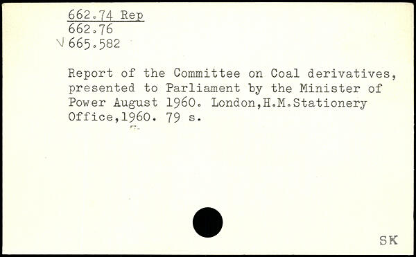 Report of the Committee on Coal derivatives, presented to Parliament by the Minister of Power August 1960, London,H.M.Stationery Office,1960.