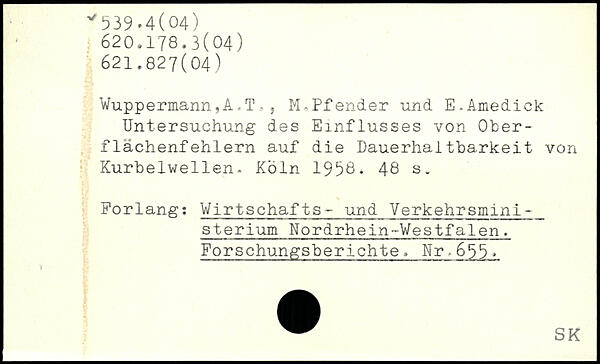 Wuppermann,A.T,, M-Pfender und E.Amedick Untersuchung des Einflusses von Oberflächenfehlern auf die Dauerhaltbarkeit von Kurbelwellen-