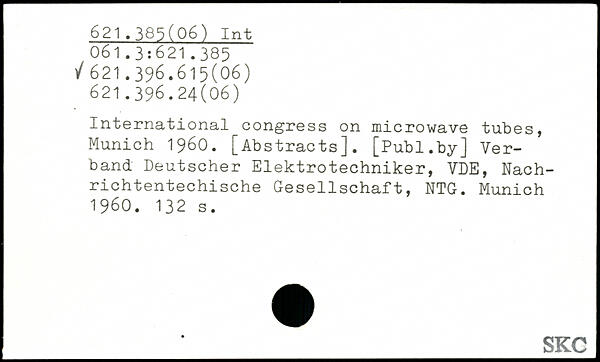 International congress on microwave tubes, Munich 1960. [Abstracts].