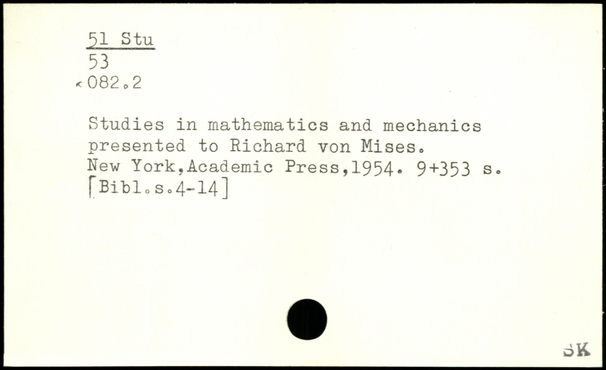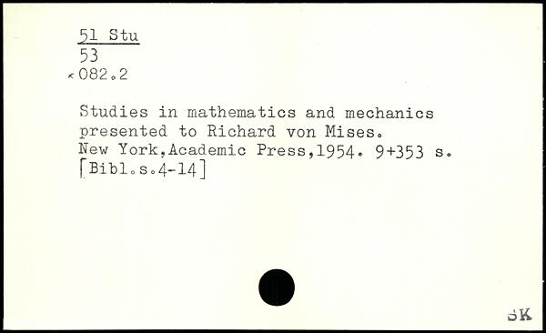 Studies in mathematics and mechanics presented to Richard von Mises.