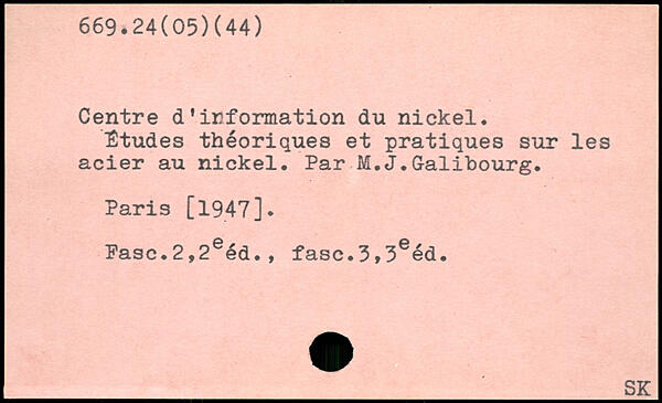 Centre d'information du nickel, études théoriques et pratiques sur les acier au nickel. Par M.J.Galibourg.