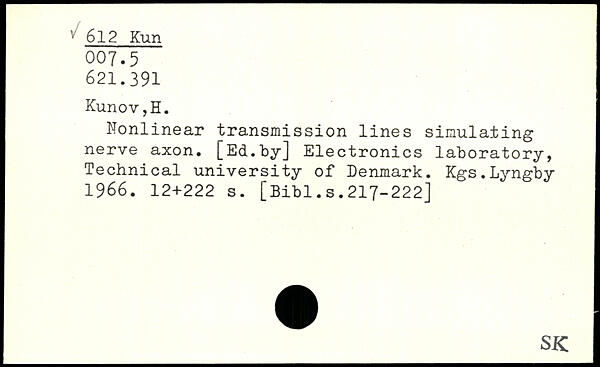 Nonlinear transmission lines simulating nerve axon. [Ed.by] Electronics laboratory, I Technical university of Denmark. Kgs.Lyngby ! 1966.