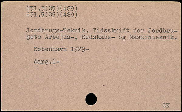 Jordbrugs-Teknik. Tidsskrift for Jordbrugets Arbejds-, Redskabs- og Maskinteknik.