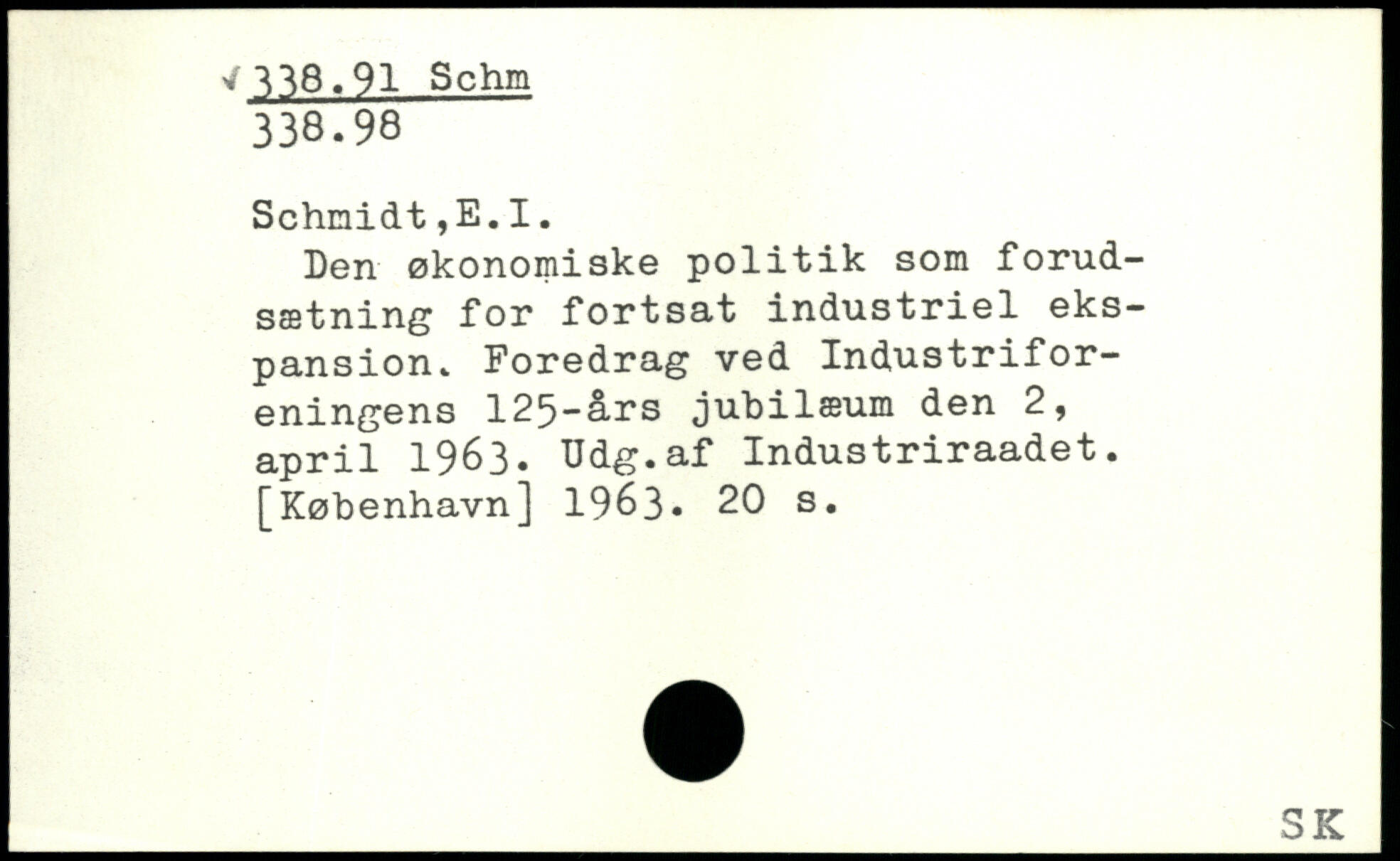 Den økonomiske politik som forudsætning for fortsat industriel ekspansion. Foredrag ved Industriforeningens 125-års jubilæum den 2, april 1963. Udg.af Industriraadet.