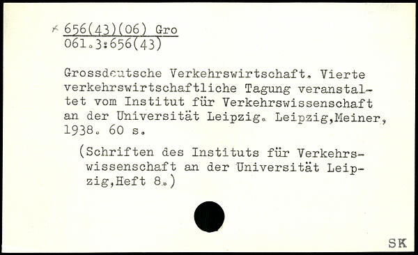 Grossdeutsche Verkehrswirtschaft. Vierte verkehrswirtschaftliche Tagung veranstaltet vom Institut für Verkehrswissenschaft an der Universität Leipzig,.