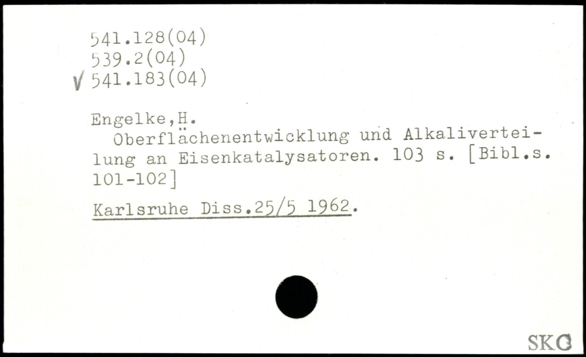 Oberflächenentwicklung und Alkalivertei-lung an Eisenkatalysatoren.