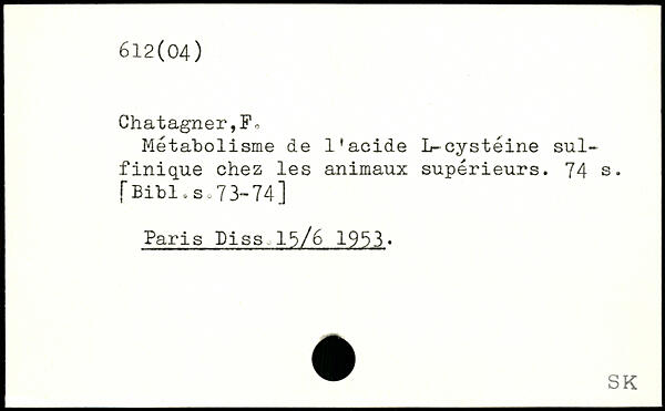 Métabolisme de l'acide L-cystéine sul~ finique chez les animaux supérieurs.