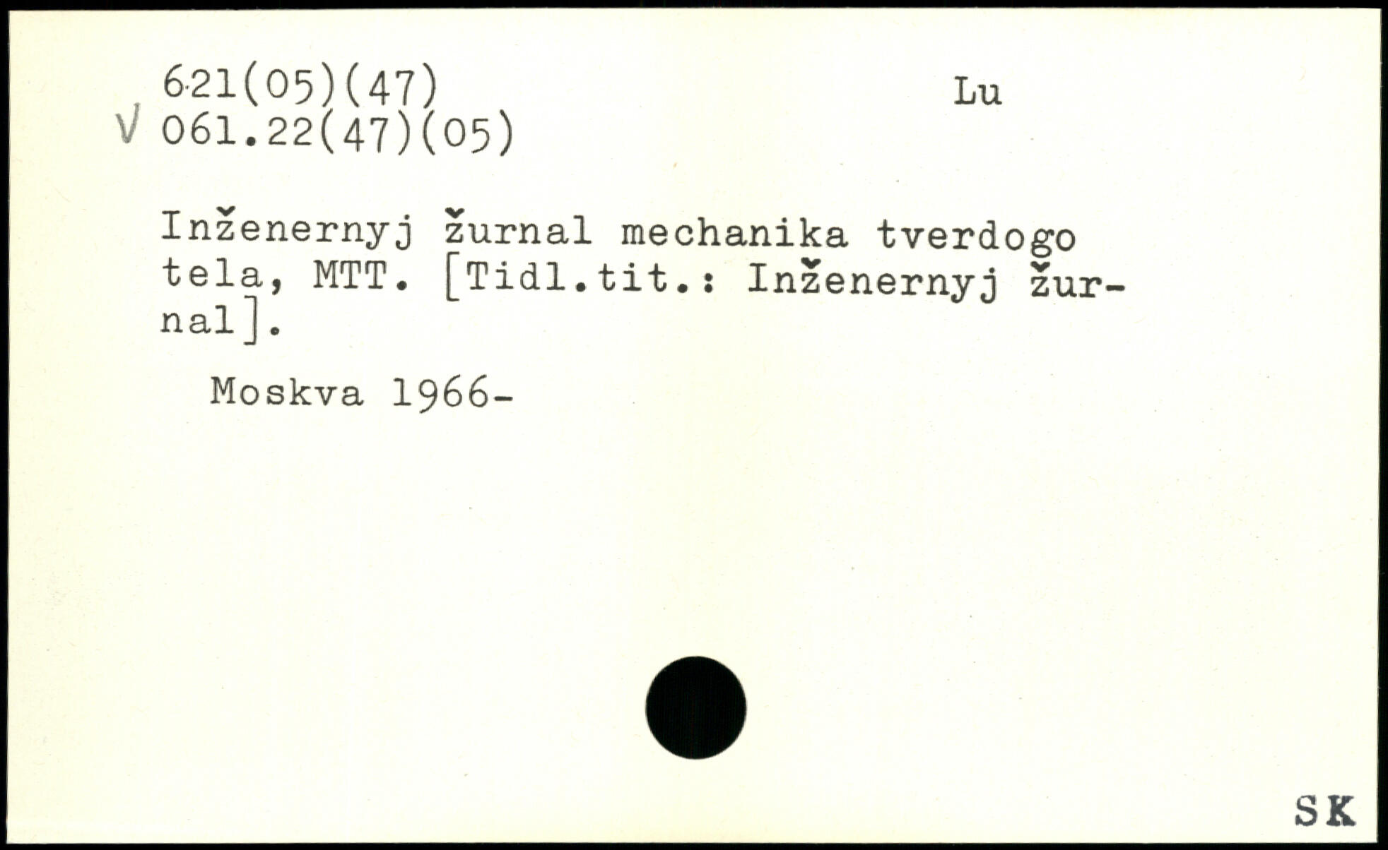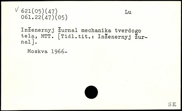 Inzenernyj zumal mechanika tverdogo tela, MTT. [Tidl.tit.: Inzenernyj zur-nal ].