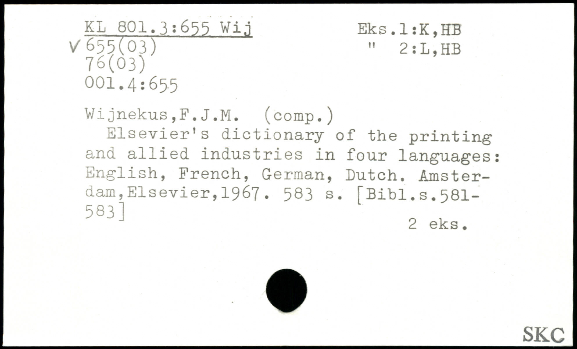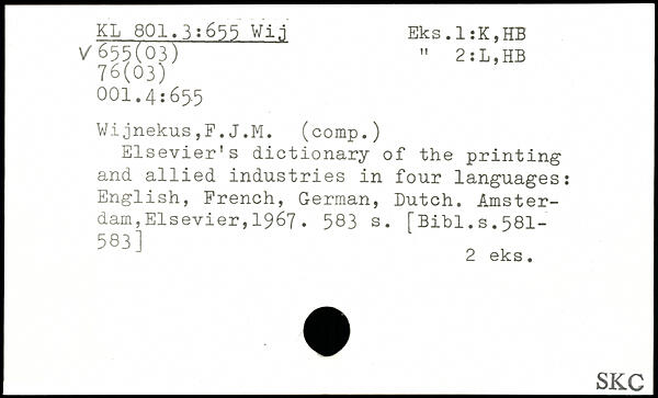 Elsevier's dictionary of the printing and allied industries in four languages: English, French, German, Dutch.