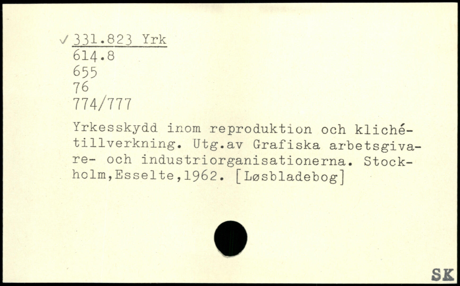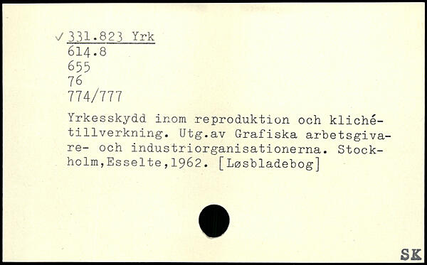 Yrkesskydd inom reproduktion och klichétillverkning. Qtg.av Grafiska arbetsgivare- och industriorganisationerna.