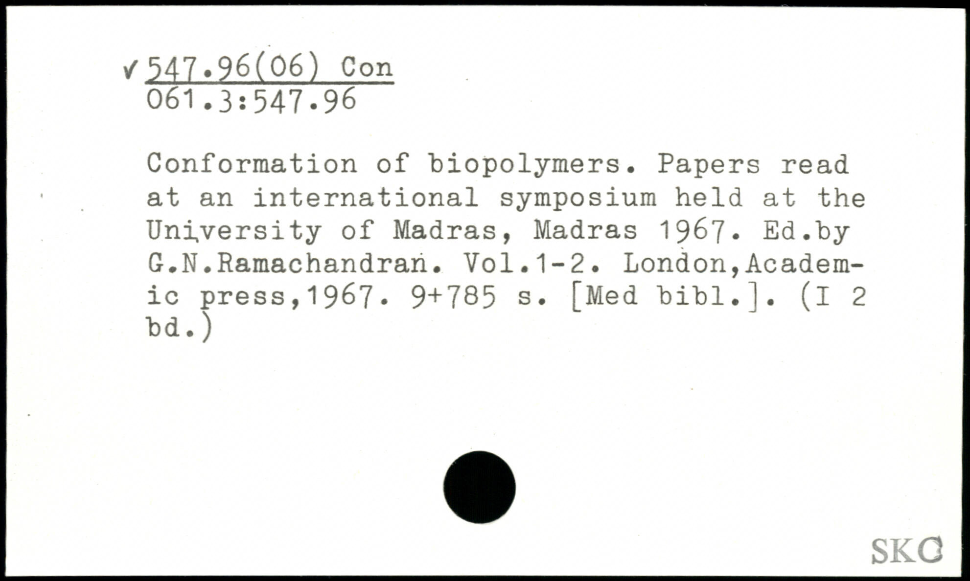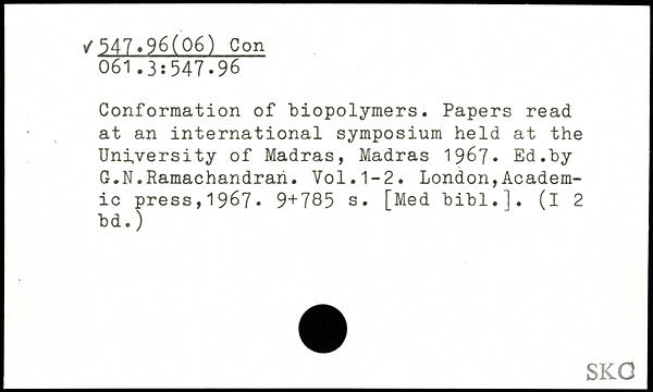Conformation of biopolymers. Papers read at an international symposium held at the University of Madras, Madras 1967. Ed.by G.N.Ramachandran.