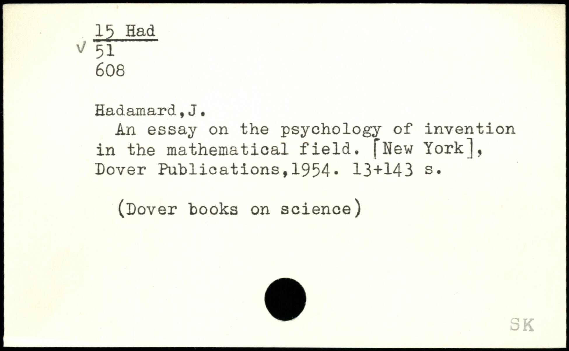 An essay on the psychology of invention in the mathematical field. [New York], Dover Publications,1954.
