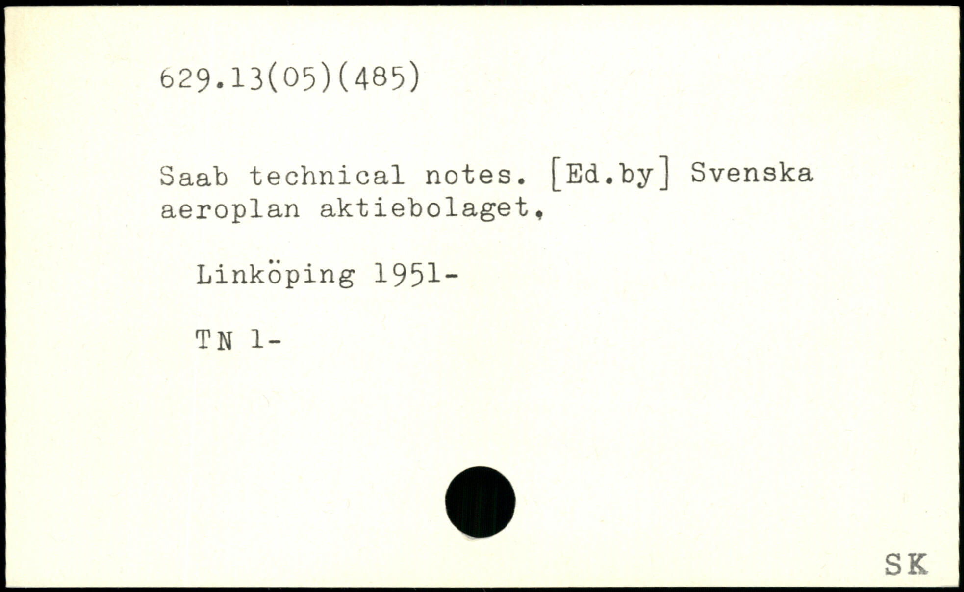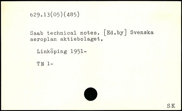 Saab technical notes. [Ed.by] Svenska aeroplan aktiebolaget, Linköping 1951- TN 1-